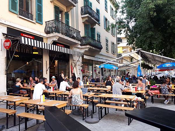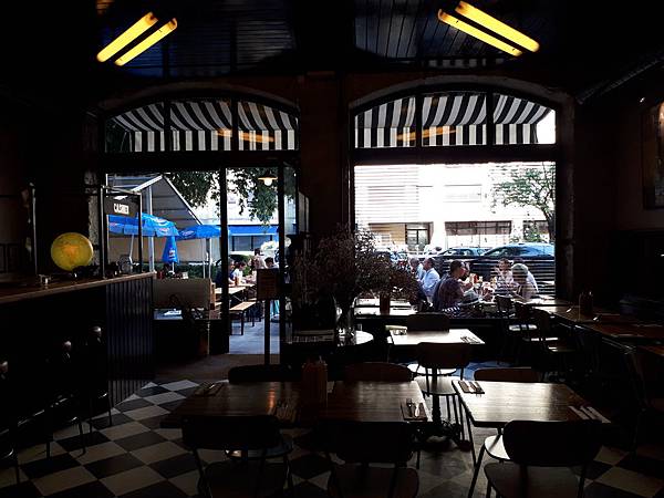 原本我們走在飯店外的小路上是十分安靜的,來到 Hamburger Foundation 所在之處就像是都市裡的小廣場,眼前豁然開朗,人們坐在露天的餐桌用餐、聊天。