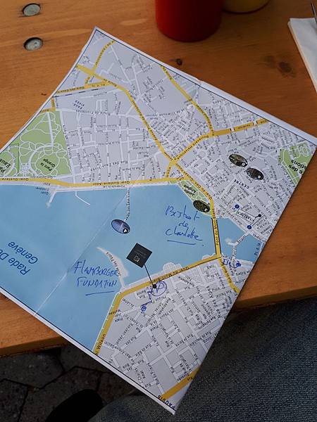 那日傍晚與帕收斯沿著 Quai du Mont-Blanc 在日內瓦湖畔走著走著,一直找不到適合的晚餐地點,轉進去對街的一間高級飯店 Grand Hôtel Kempinski Genève,想看看他們的餐廳大概多少錢,可能是時間太早(下午五點多吧..),餐廳好像還在整理中沒有開張,我們走到飯店大廳,問了櫃臺的值班經理,這附近有沒有好吃的 Hamburger?值班經理充滿笑容地拿出一份地圖,在上頭畫出兩處餐廳,一處就在附近,於是我跟帕收斯謝過值班經理後,推門出去,走沒幾分鐘就來到這間 The Hamburger Foundation - Paquis。